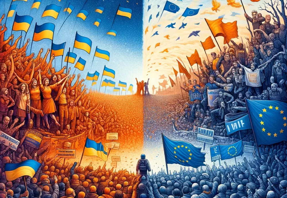 Prosvjedi na EuroMajdanu, koji su započeli krajem 2013. i trajali do početka 2014., bili su direktna posljedica odluke tadašnjeg predsjednika Viktora Janukoviča da odustane od Sporazuma o pridruživanju s Europskom unijom, naginjući se umjesto toga prema jačanju veza s Rusijom. Ovaj pokret, koji je također rezultirao Janukovičevim svrgavanjem, ponovno je potvrdio želju Ukrajine za zapadnom orijentacijom, ali je ujedno produbio podjele unutar zemlje i pojačao tenzije s Rusijom.
